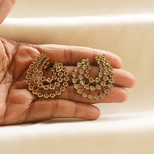 Elegant crystal-studded gold hoops for a modern yet traditional charm.