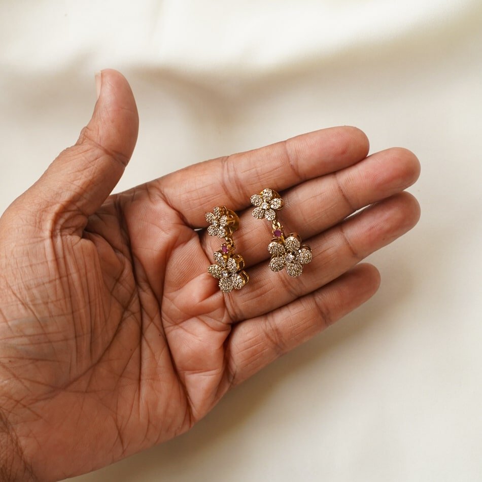 The Floral Diamond Bloom Necklace Set from Karra De showcases elegant floral motifs encrusted with shimmering diamonds and colorful stones. Designed for women who love grace and sophistication, this set is ideal for weddings, festive events, and parties.