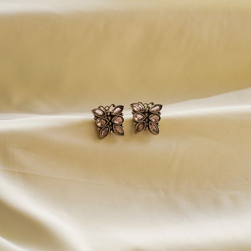 Pastel floral stud earrings designed with premium oxidised detailing. Ideal for weddings, festivals, and ethnic styling. Lightweight, skin‑friendly, and made with premium oxidised alloy.