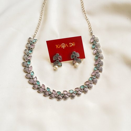 Pastel‑tone leaf oxidised necklace set crafted with premium artistry.