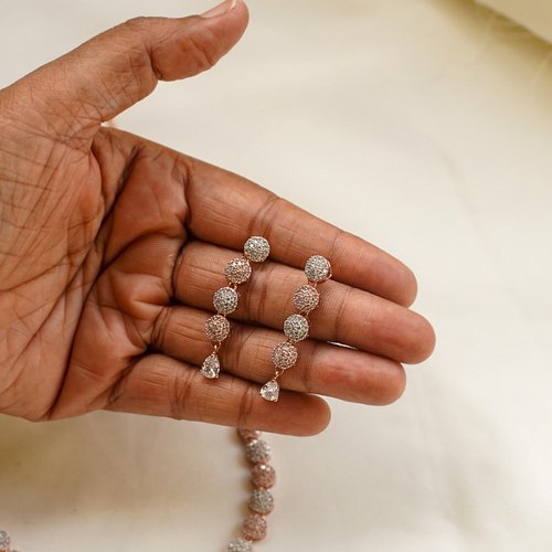 Elegant rose gold necklace set with matching earrings for sophisticated charm.