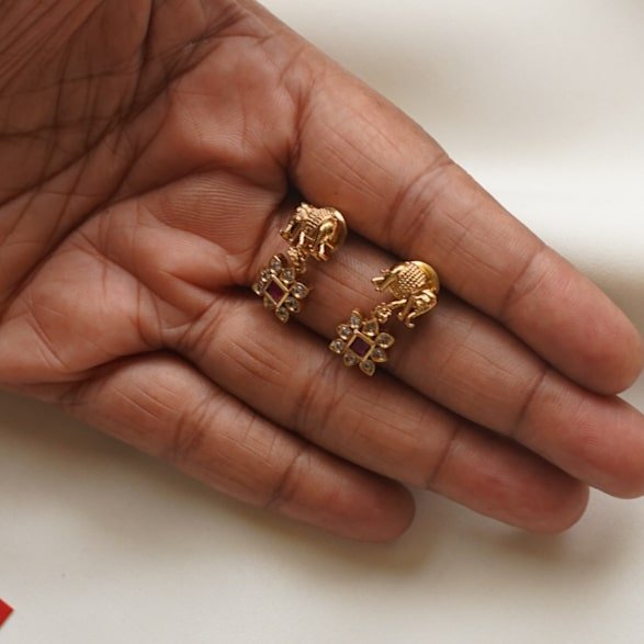 The Royal Elephant Temple Neckpiece Set by Karra De celebrates timeless temple artistry. Crafted in antique gold with elephant motifs and ruby-emerald embellishments, it’s the perfect heritage piece for brides and festive occasions, symbolizing prosperity and grace.