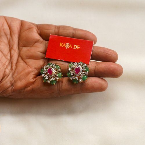 Floral stud earrings with ruby and emerald stones for festive brilliance.
