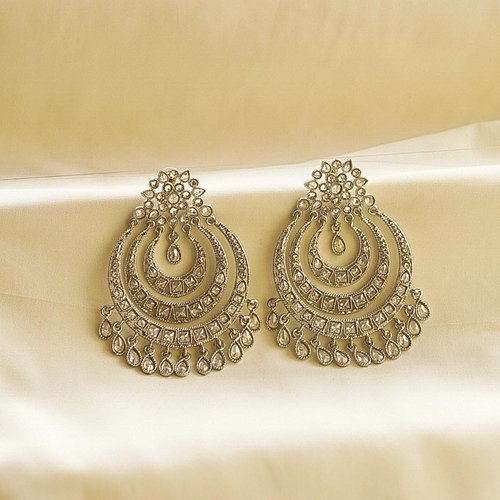 Karra De’sSilver Luxe Bridal Chandelier Earrings are a masterpiece of shimmering stones andSilver brilliance. Designed to enhance bridal and festive looks with unmatched elegance.